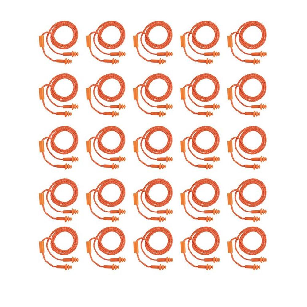 25 Tapones auditivos reutilizable triple barrera con cordón Naranja