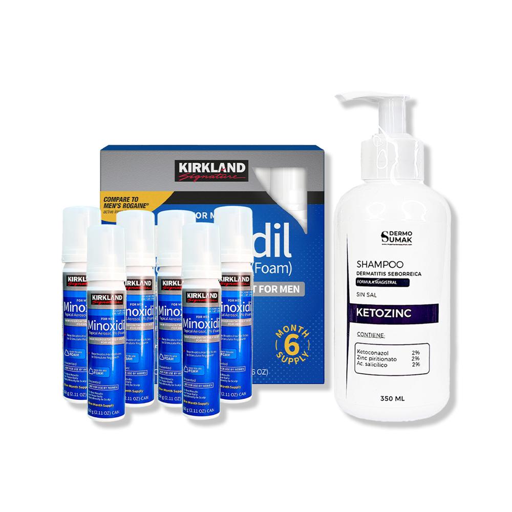 6 Minoxidil Espuma Kirkland + Shampoo Ketozinc Cabello Graso 350Ml