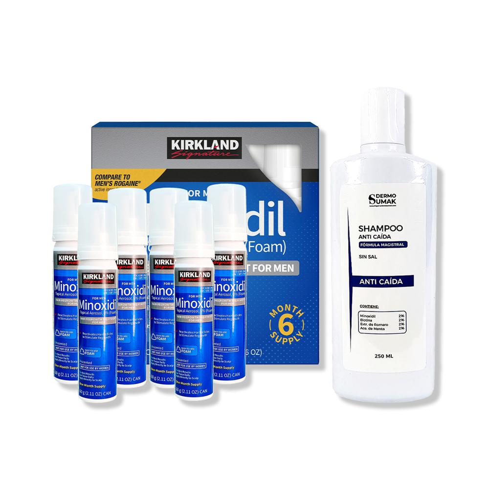 6 Minoxidil Espuma Kirkland + Shampoo Sin Sal Anticaida 250Ml