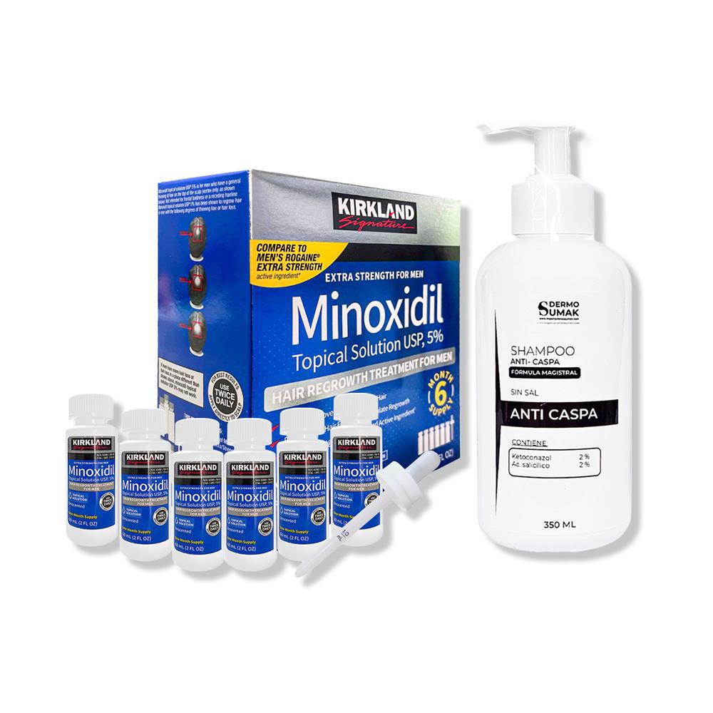 6 Minoxidil Liquido Kirkland + Shampoo Sin Sal Anticaspa 350ml