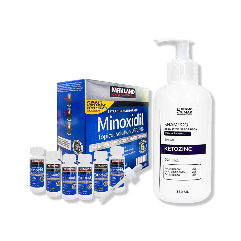 6 Minoxidil Liquido Kirkland + Shampoo Sin Sal Ketozinc Cabello Graso 350ml