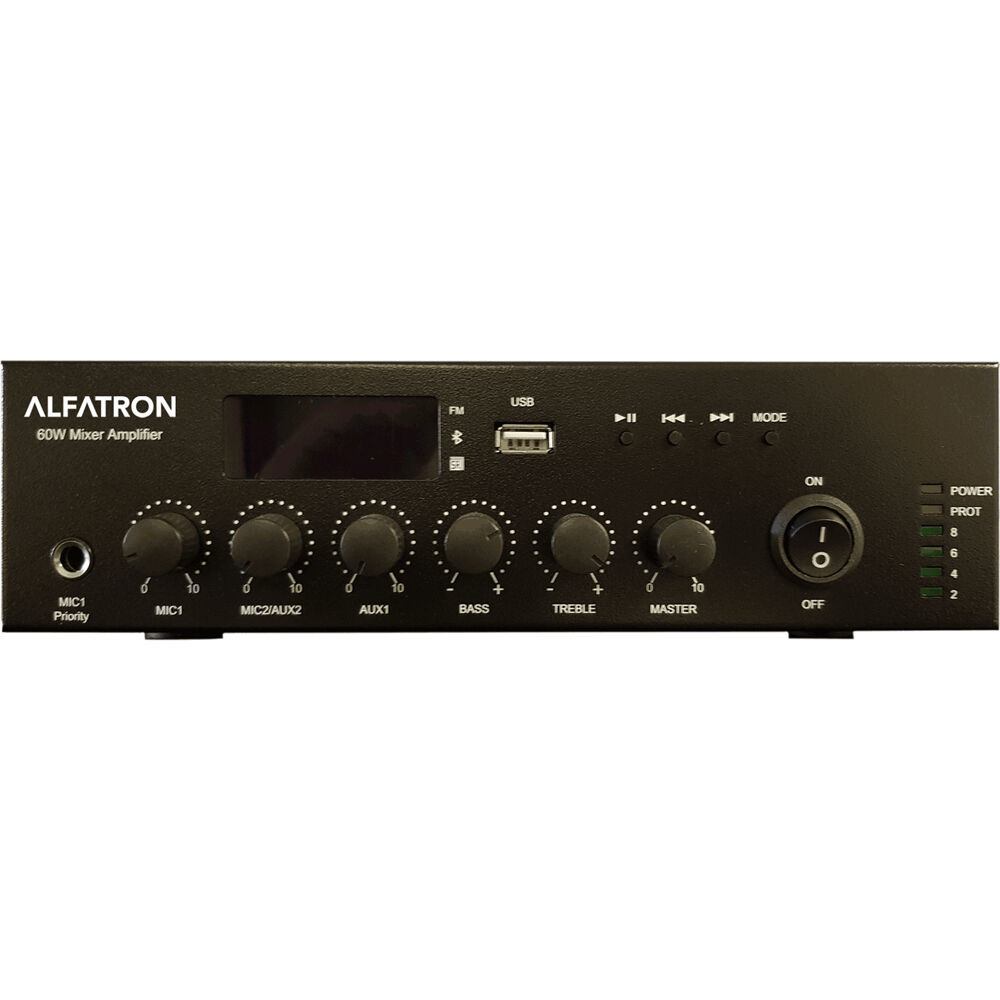 Amplificador Mezclador Alfatron Compact 60W con Bluetooth, USB, Radio FM y Control Remoto - 1706784-REG