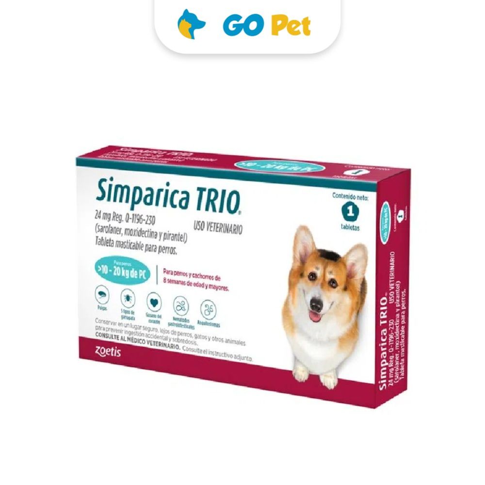 Antipulgas Simparica Trio de 10 a 20 kg x 03 Tabletas