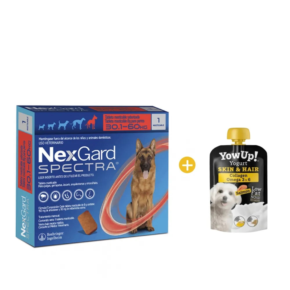 Antipulgas y Antiparasita Nexgard Spectra XL x 3 Tab 30 a 60 Kg y GRATIS Yowup Yogurt Salmón 115 Gr