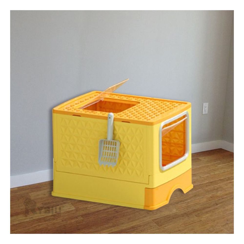Arenero con Tapa y Bandeja Removible en Amarillo Y+Stickers