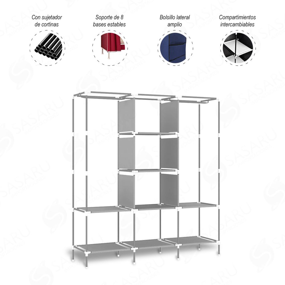 Armario Portátil 3 Cuerpos de Tela Plegable Marrón