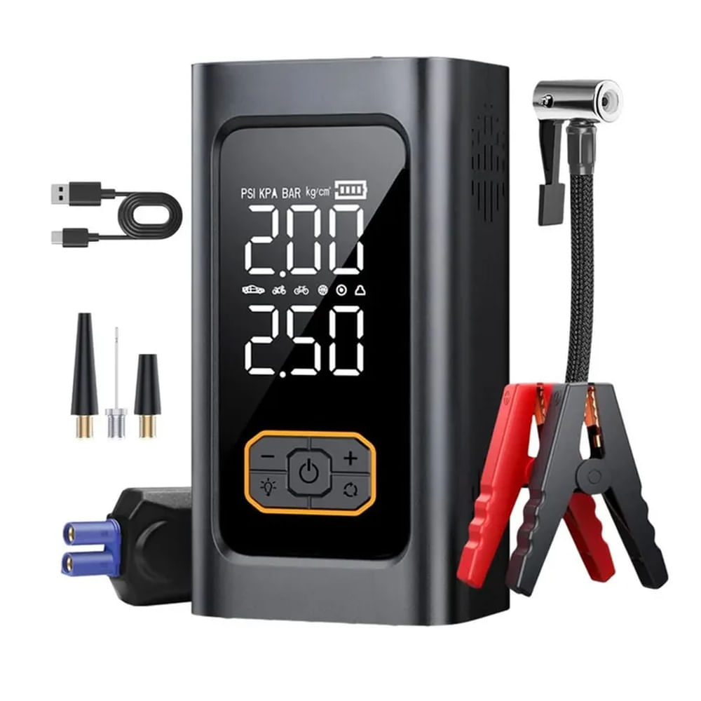 Arrancador de Baterias Portátil con Inflador Luz y Power Negro