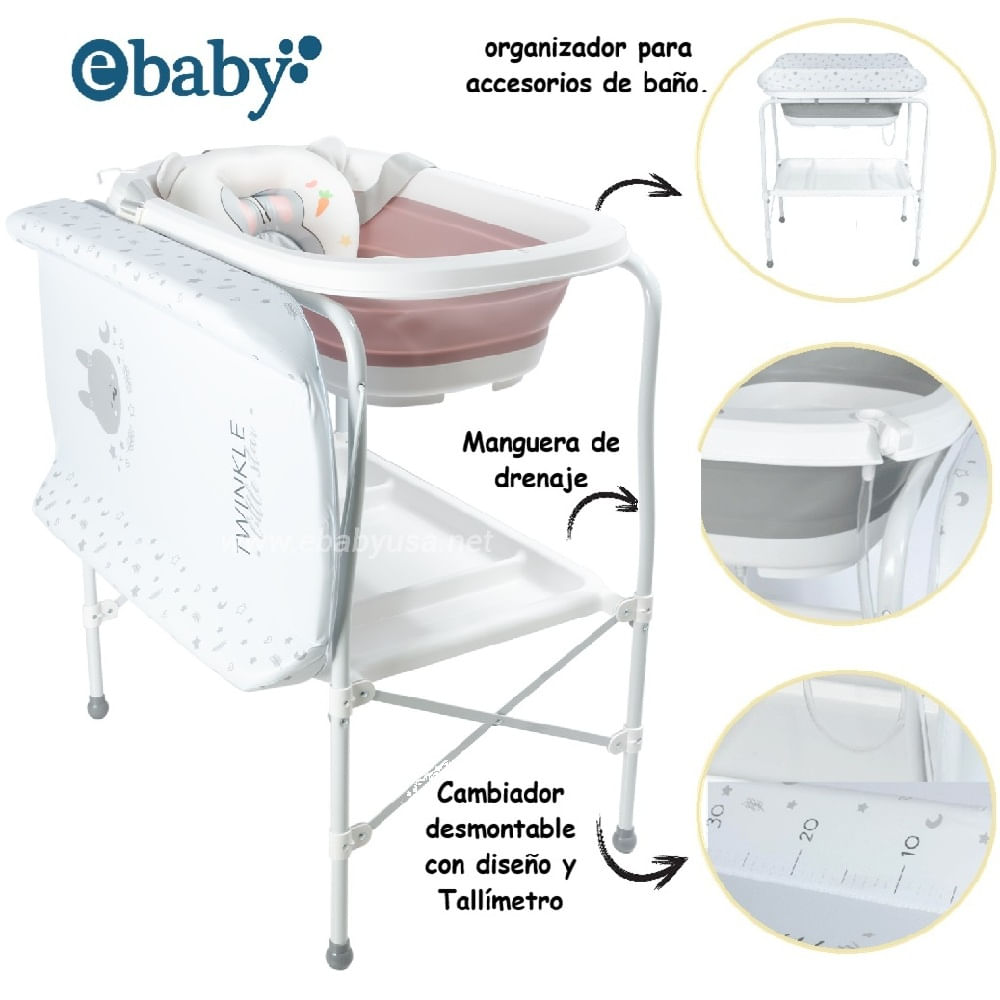 BAÑERA CAMBIADOR CON DRERNAJE COJIN BLUR -ROSADO