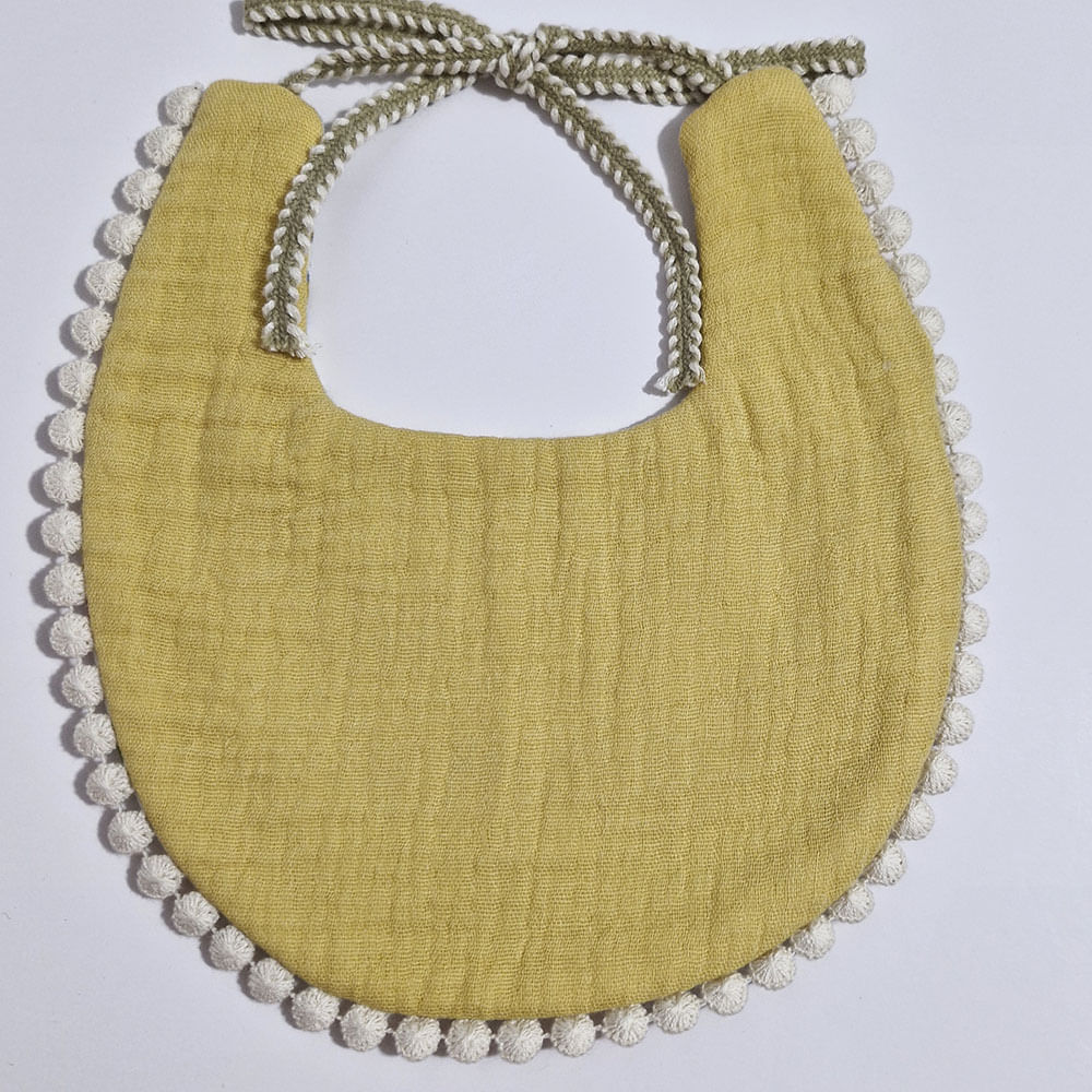 Babero de algodón reversible mostaza floral para bebe RN hasta los 6m Aititi´s Kids