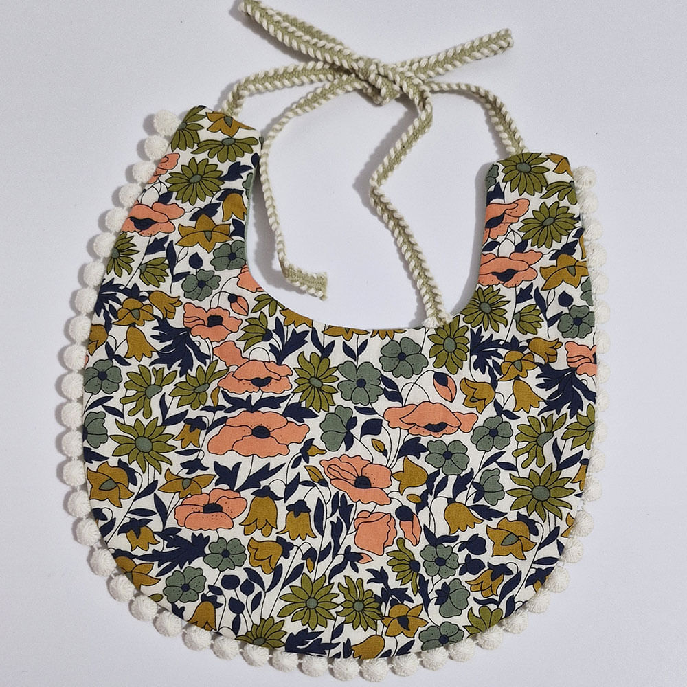 Babero de algodón reversible verde agua floral para bebe RN hasta los 6m Aititi´s Kids