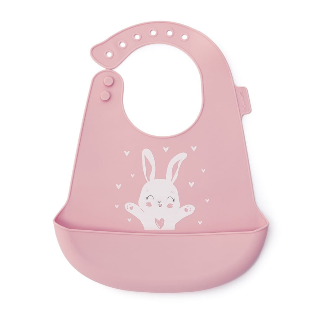 Babero Maternelle con Bolsillo de Silicona Conejito para Bebés y Niños Rosado
