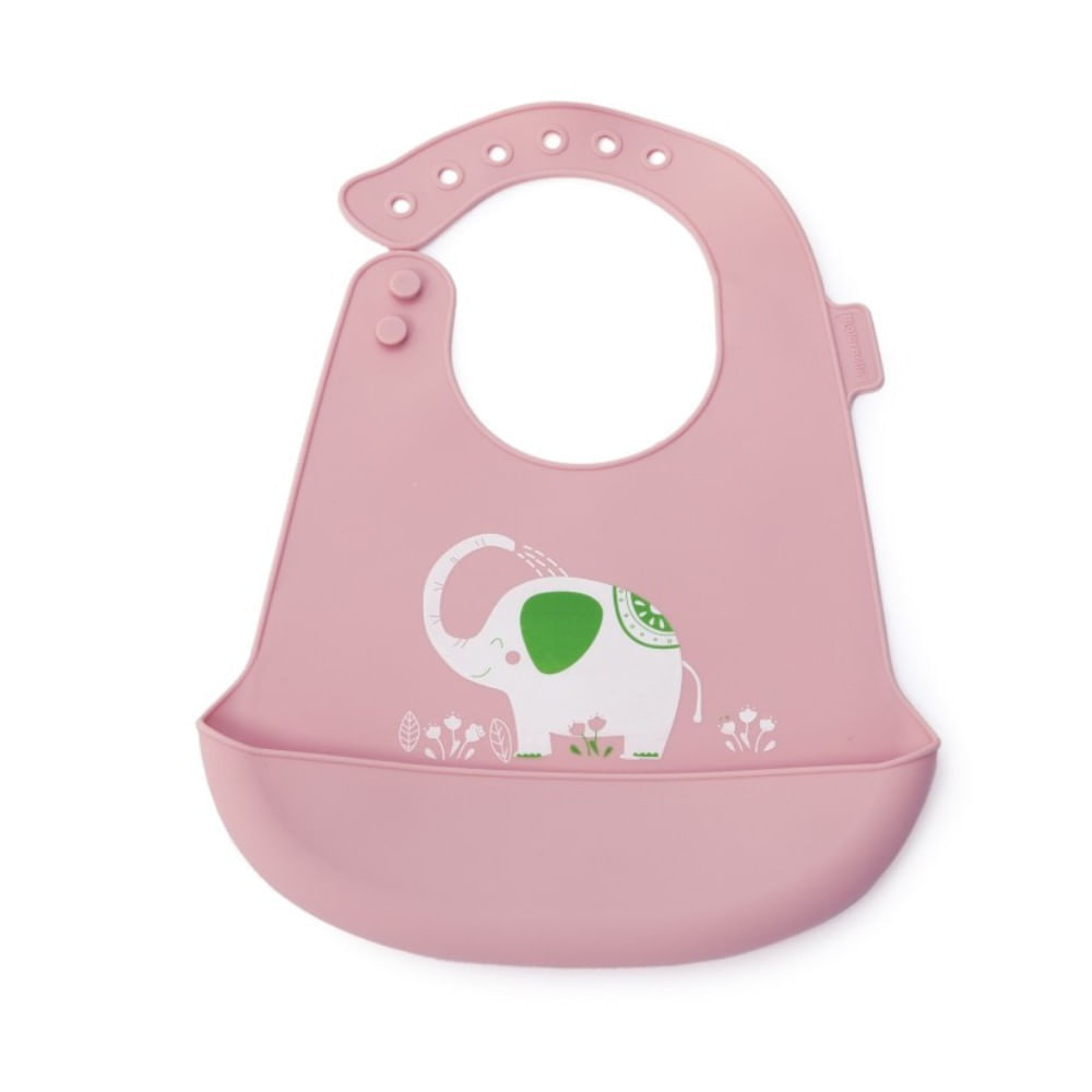 Babero Maternelle con Bolsillo de Silicona Elefantitos para Bebés y Niños Rosado