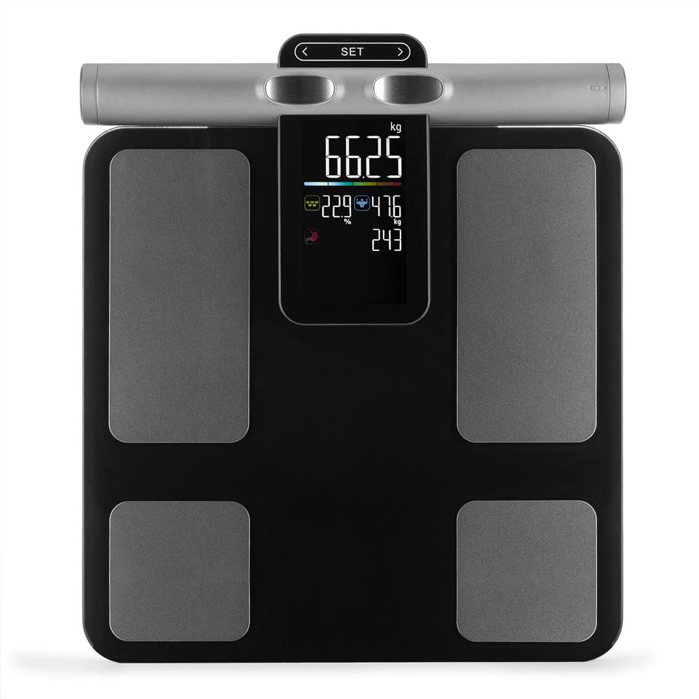 | Características | Balanza corporal 8 electrodos con IMC, grasa, músculo, Bluetooth y pantalla digital a color. |