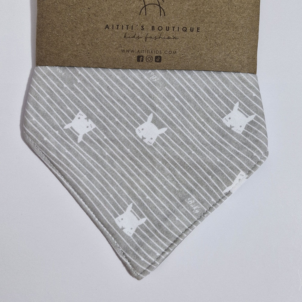 Bandana de algodón con diseño de conejo plomo para bebe RN hasta 6m Aititi´s Kids