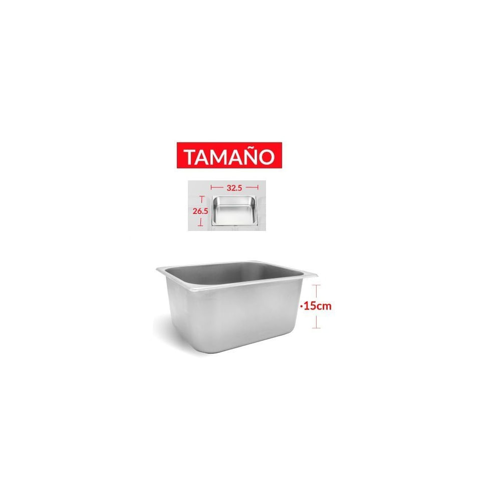 BANDEJA GASTRONÓMICA DE ACERO 26 cm x 32.5 x 15 cm Plateado