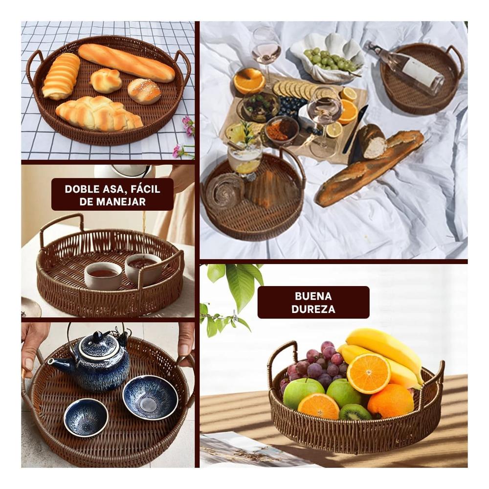 Bandeja tejida circular con asas para guardar accesorios y objetos en hogar marron