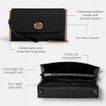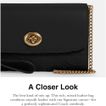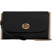 Bandolera de cuero Coach con cierre giratorio y compartimentos múltiples.