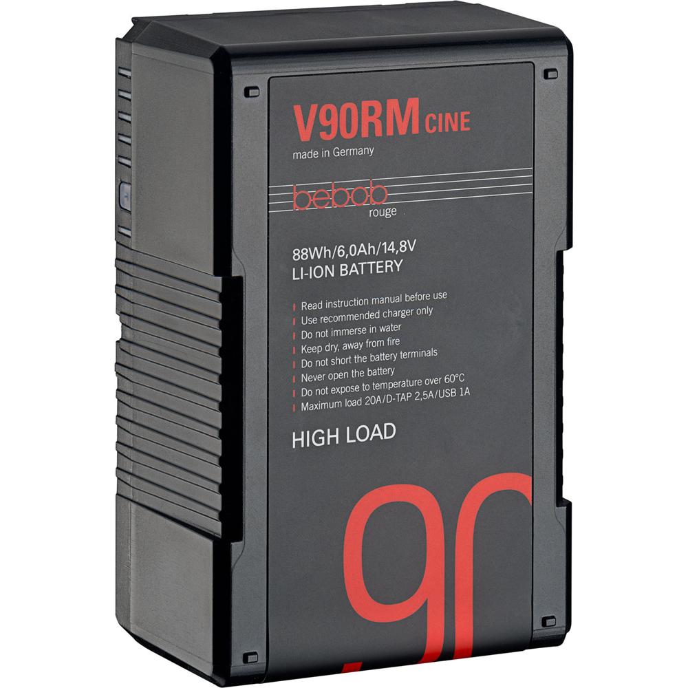 Batería Li-Ion V-Mount bebob V90RM-CINE 14.8V 88Wh - Carga Alta, 20A, USB, D-Tap, Resistente a Caída