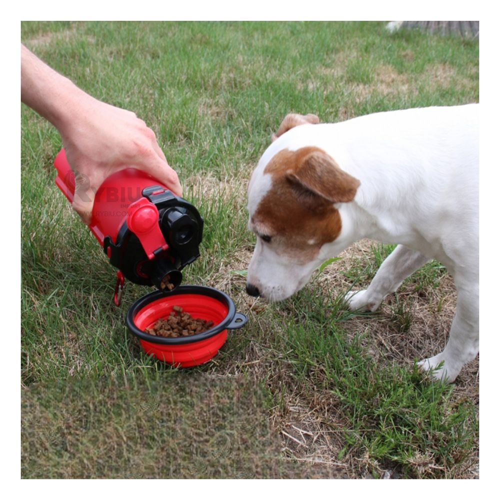 Bebedero y Comedero de Mascotas Color Rojo Y+Papel de Regalo
