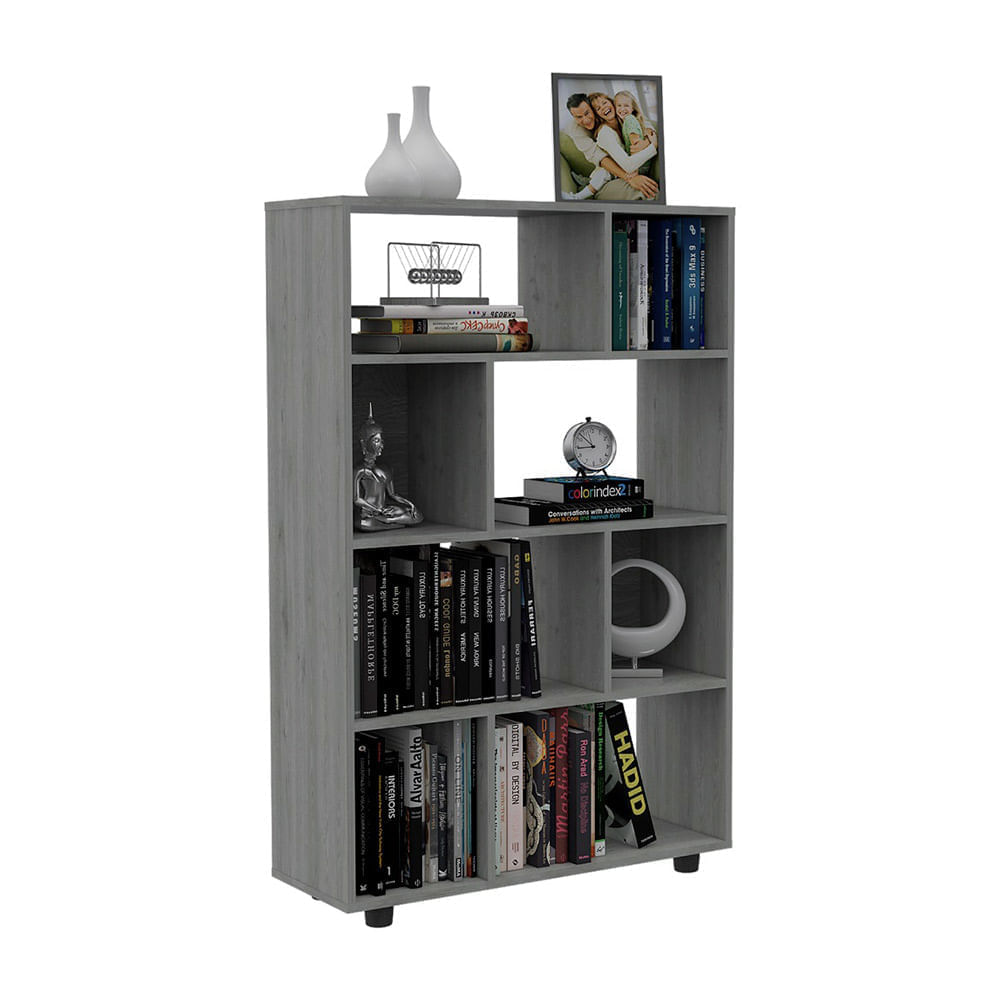 Biblioteca Office Tuhome Gris Melamine 8 Estantes