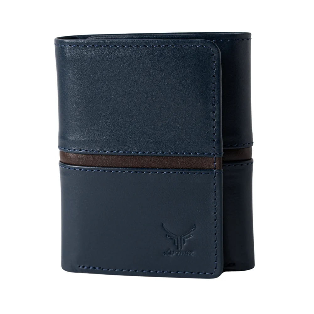 Billetera De Cuero Vacuno De Tres Cuerpos AR19 Azul Con Café