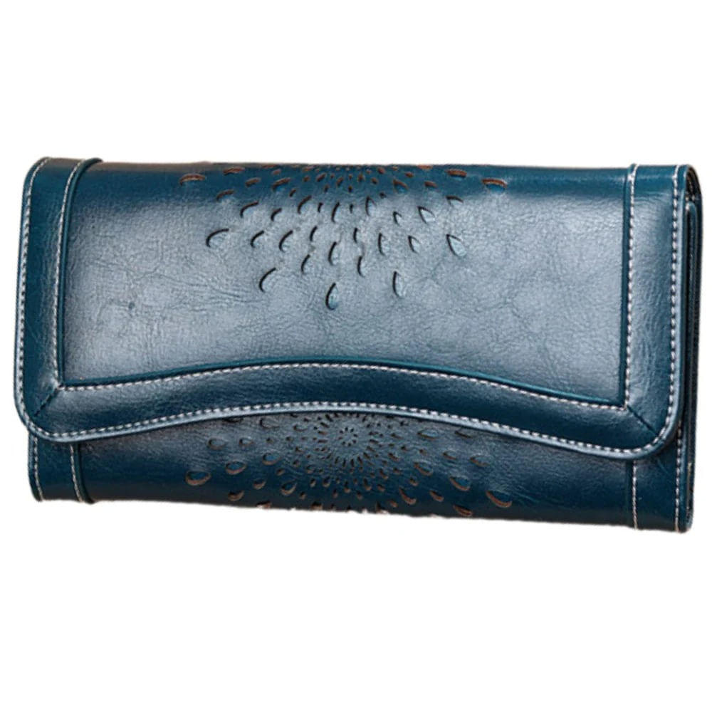 Billetera De Cuero Vacuno Tipo Sobre Para Dama W0013 Azul