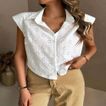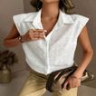 Blusa de Verano mujer Elvira Blanco con hombreras - Talla M Blanco M