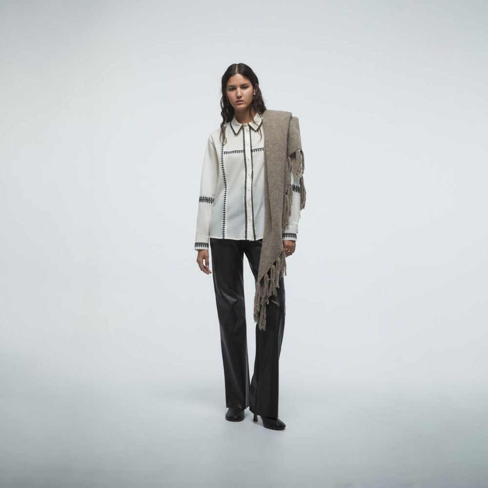 Blusa Mujer Sfera Bordados Contraste Crudo