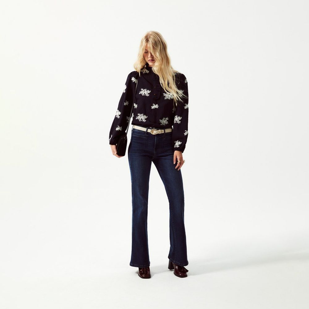 Blusa Mujer Sfera Flores Bordadas Azul Marino