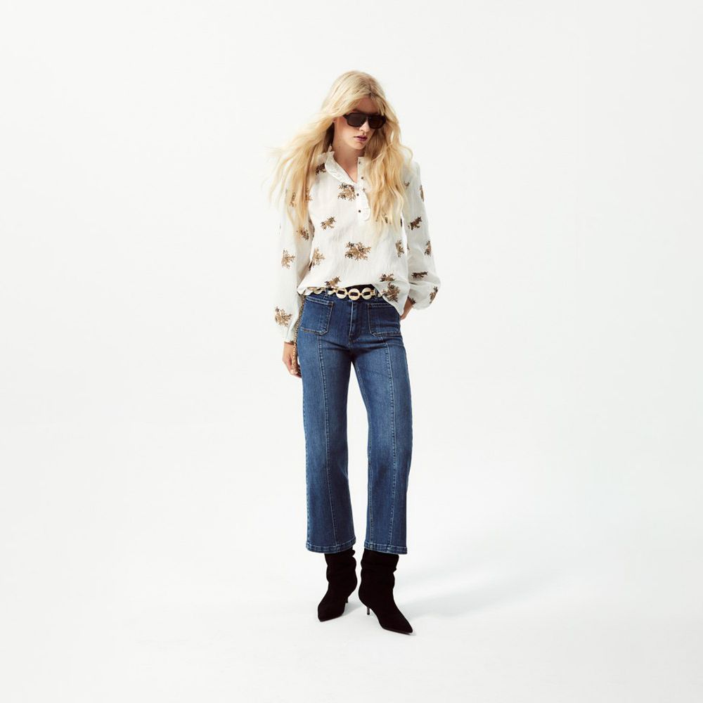 Blusa Mujer Sfera Flores Bordadas Crudo