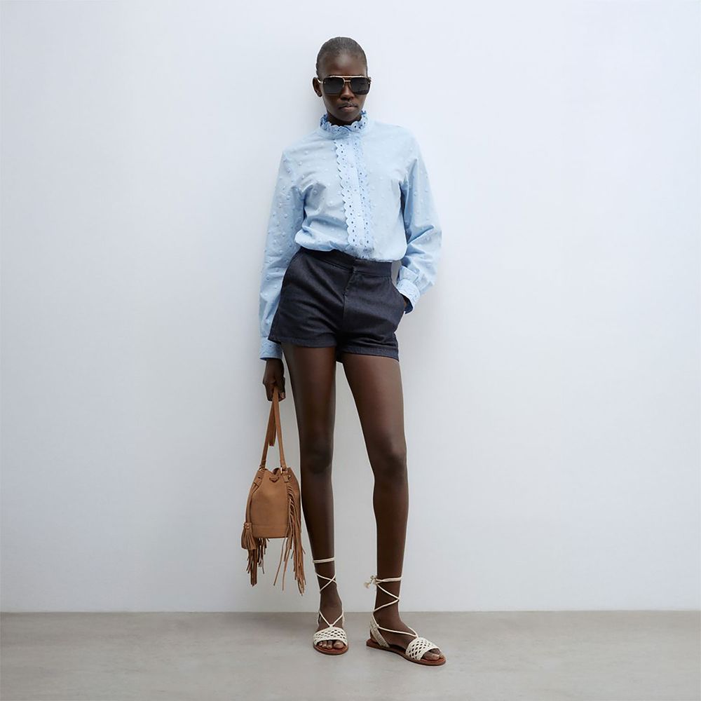 Blusa Mujer Sfera Romántica Manga Larga Celeste