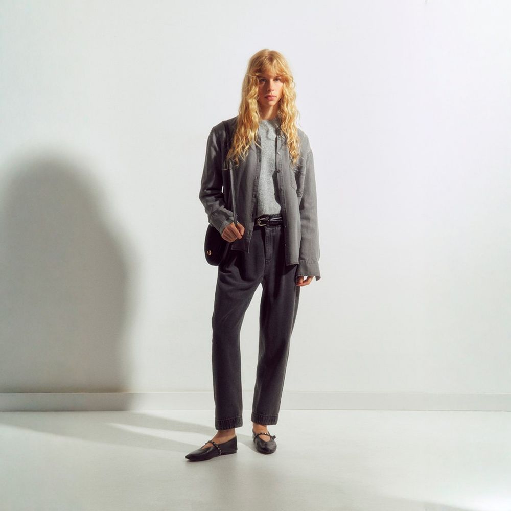 Blusa Mujer Sfera Tencel Lavado Gris Melange