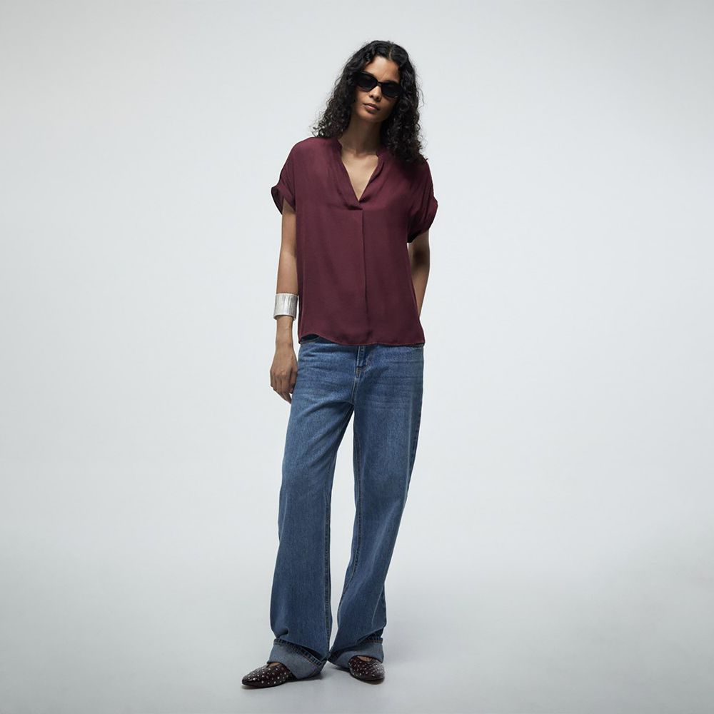 Blusa Mujer Sfera Top Fluido Pico Vino