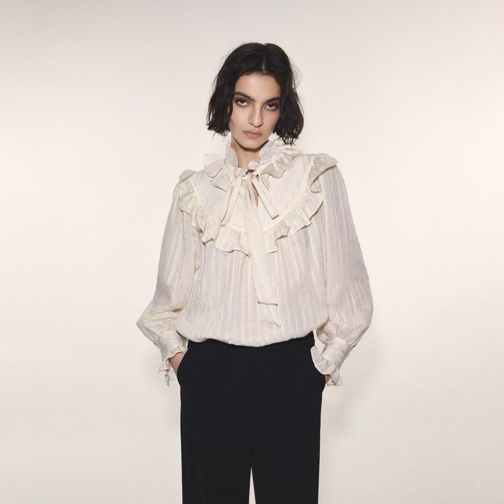 Blusa Mujer Sfera Volantes Pecho Crudo