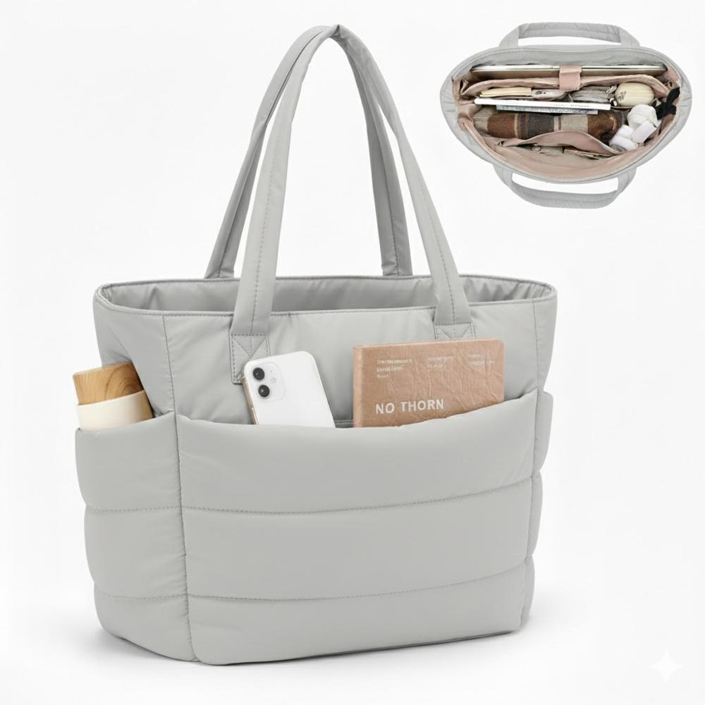 BOLSO PUFFER - TIPO TOTE BAG PARA DAMA PORTALAPTOP - Plateado Mate - Talla única