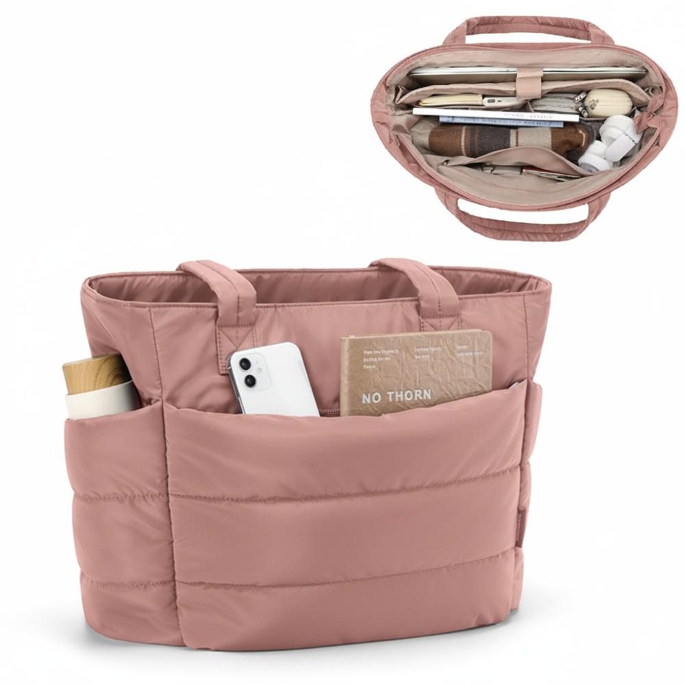 BOLSO PUFFER - TIPO TOTE BAG PARA DAMA PORTALAPTOP - Palo Rosa - Talla única