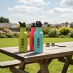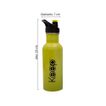 | Características | Botella de plástico 100% virgen, apto para líquidos fríos. Elástico de silicona antideslizante. Mango ergonómico confortable. Producto libre de BPA. Liviano y portátil. Cierre fácil. Reutilizable. |