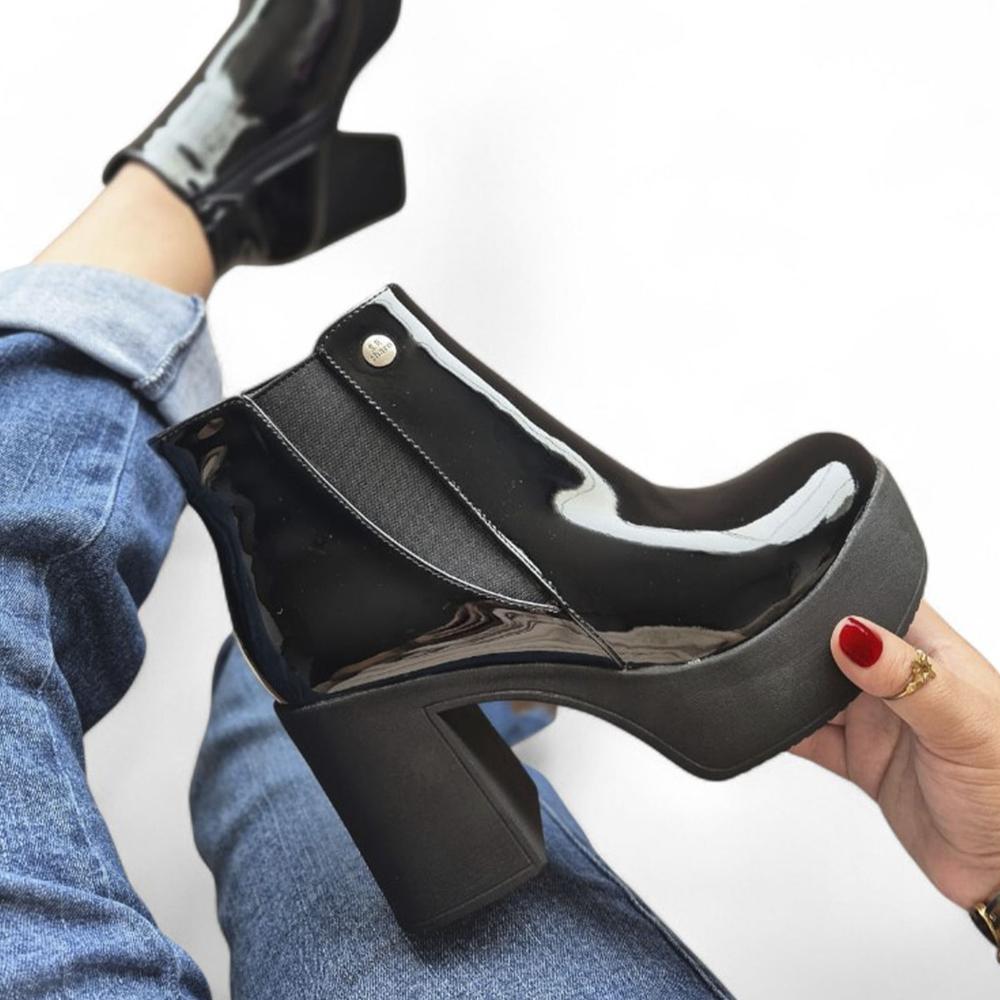 | Modelo | Botin Mujer Planta Spanso Taco 1177 Charol 5C-68 Color Negro |