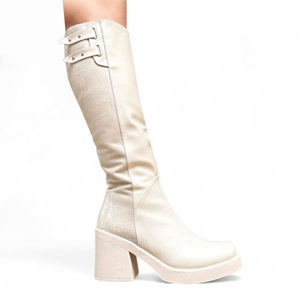 ModeloBotin Mujer Punta Cudrada Taco 7 2086L-75 Color Perla