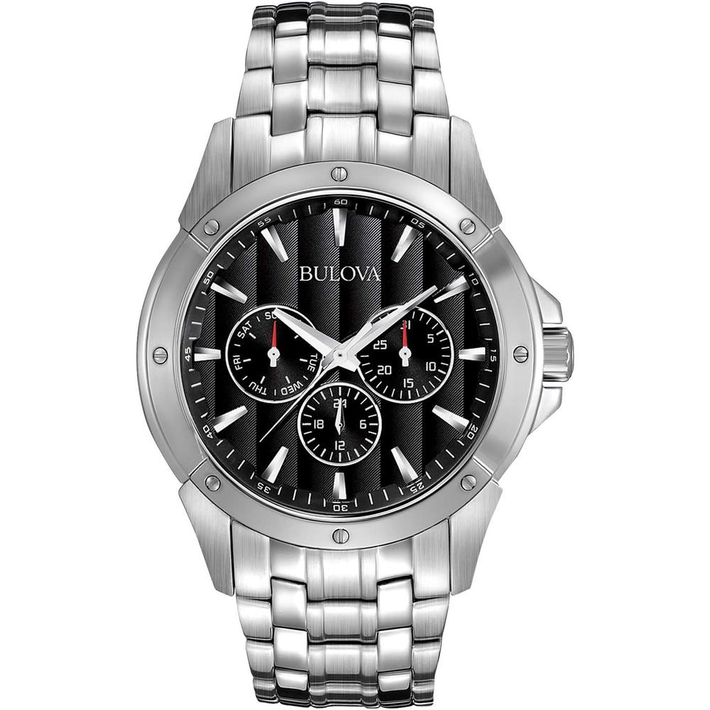 Bulova reloj clásico para hombre de cuarzo multifunción con esfera negra | Plateado