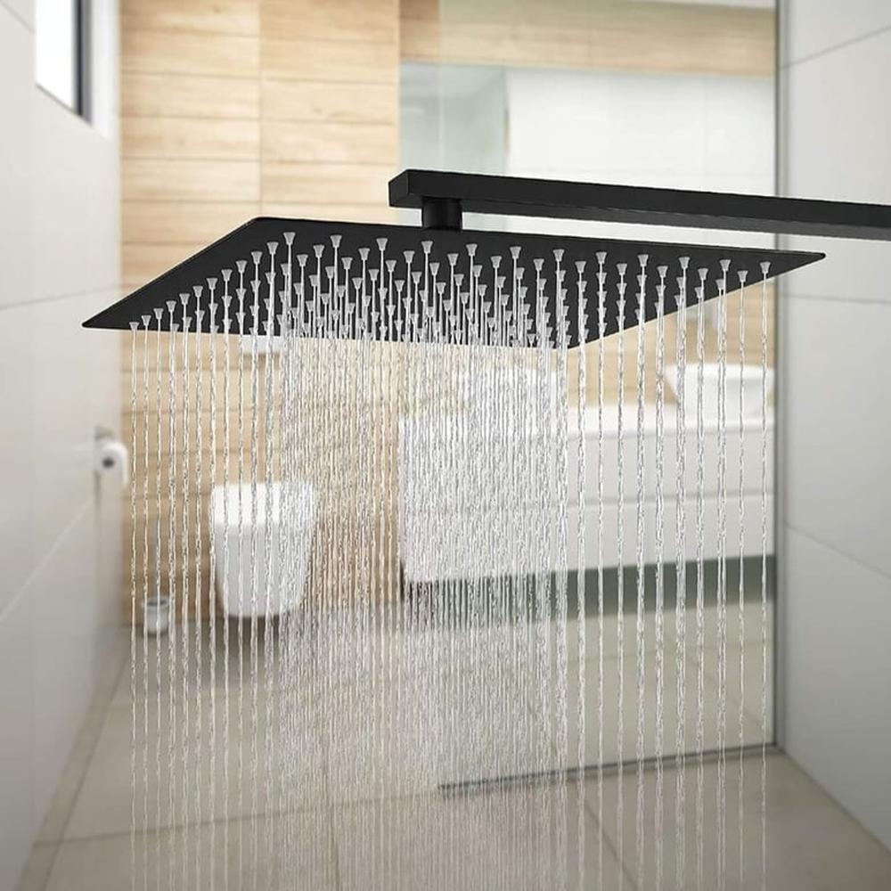 Cabezal Ducha Española Cuadrada Negro Mate 30x30cm con Brazo de 50cm