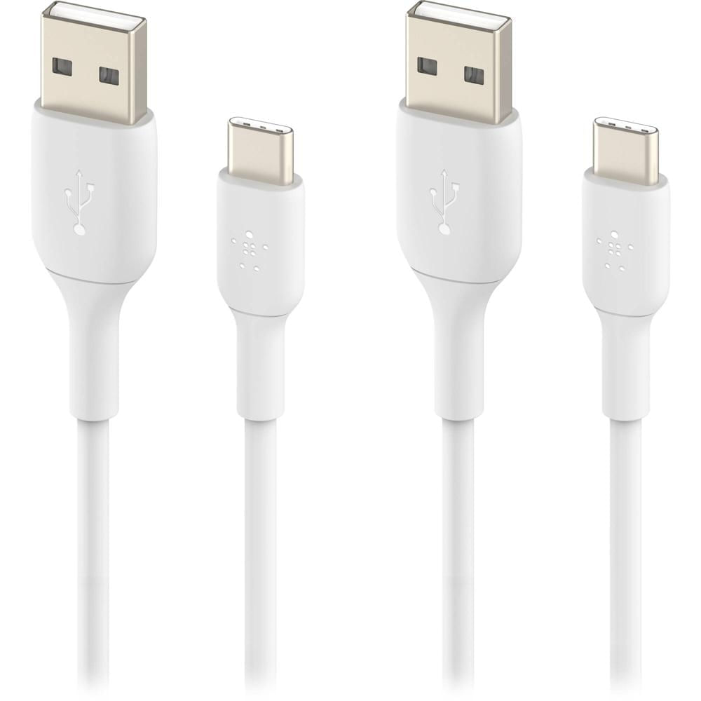 Cable Belkin USB-A a USB-C (3.3', Blanco, Paquete de 2) - USB 2.0, Conexión USB-A a USB-C, Certifica