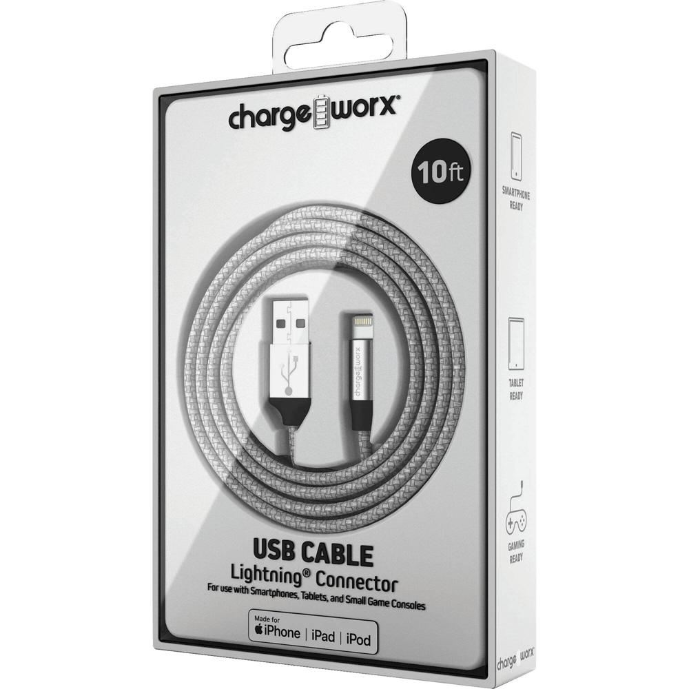 Cable ChargeWorx Lightning a USB Tipo-A Masculino (10', Plata) - Conector Lightning Masculino, Conec