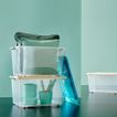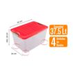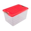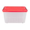 | Características | Caja organizadora hecho de plástico transparente y tapa de diversos colores. Cuenta con 4 ruedas en la base, tapa con cierre click, 2 manijas a los laterales, es durable, fácil de trasladar y muy espaciosa, ideal para guardar objetos grandes. |
