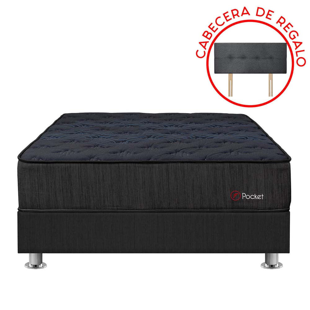 Cama Americana FORLI Pocket Negro Queen + Protector + 2 Almohadas