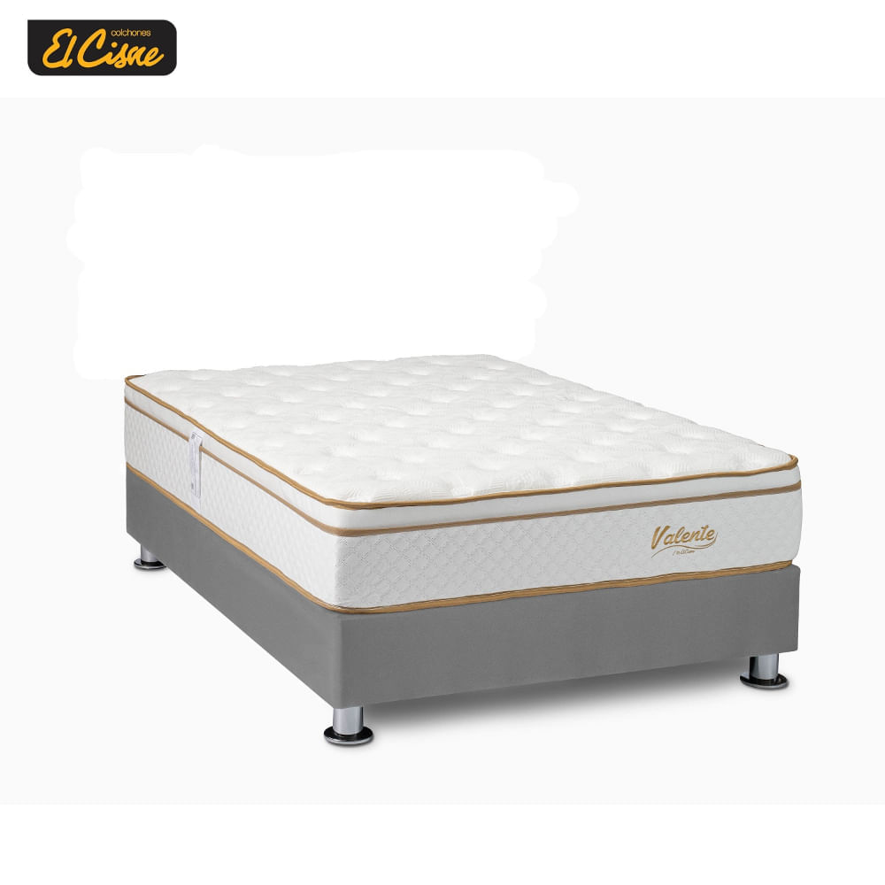 Cama Americana Valente Queen Gris + 2 almohadas viscoelastic + 1 protector