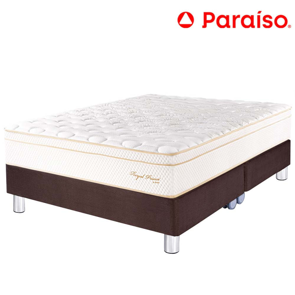 Cama Box Tarima PARAISO Royal Prince Chocolate Queen + 2 Almohadas Viscoelásticas + Protector