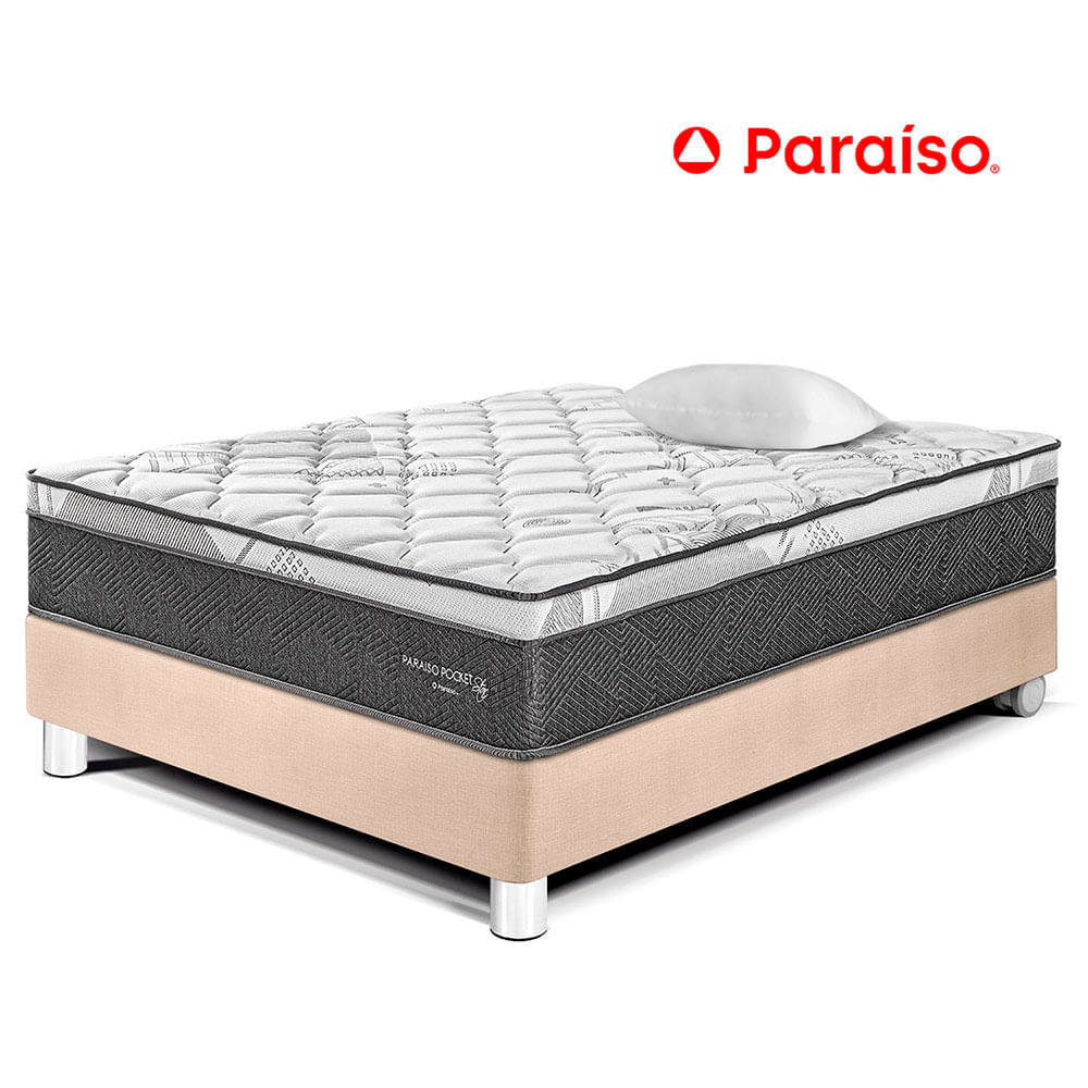 | Beneficios | Paraíso Pocket Star ha sido elaborado con fina tela tejido de punto e interior de espuma de formulación especial que ofrece una sensación de gran suavidad al tacto y gran comodidad. Sus resortes Pocket, con independencia de movimiento, brindan un descanso ininterrumpido, aún si el colchón es compartido. |
