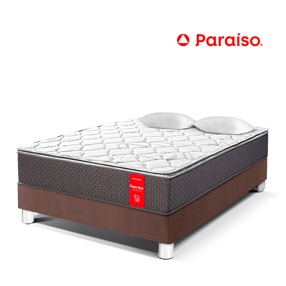 Cama Paraíso Super Star 2 Plazas Chocolate + 2 almohadas + protector