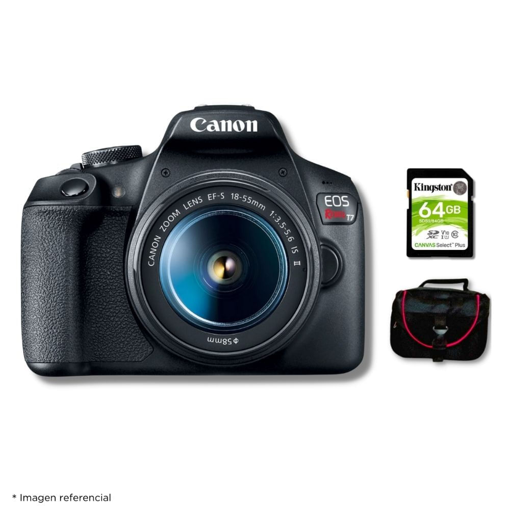 | Incluye | (01) Cámara Canon EOS T7 EF-S 18-55mm f/3.5-5.6 IS II + Kit Básico (N) |